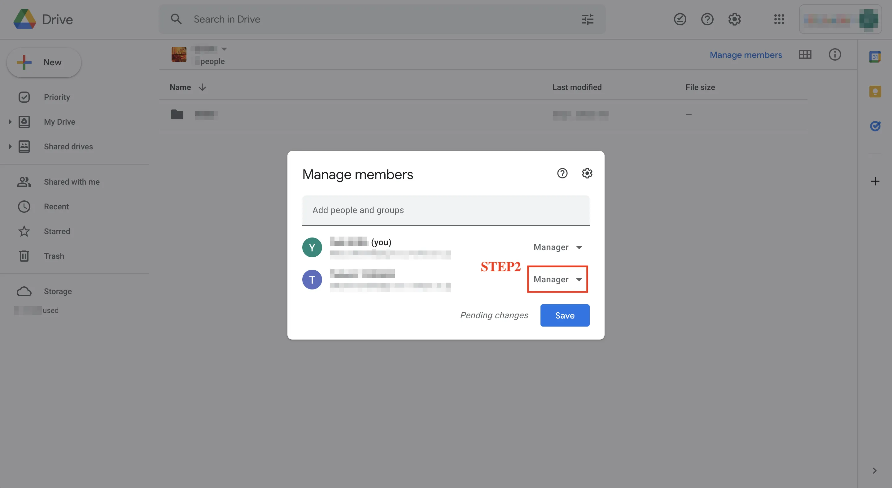 • Managerr: A manager has the highest privilege in the shared drive. You can control the files, members, and settings on the shared drive. (In the case of Google Group, only yourself would be the administrator.)