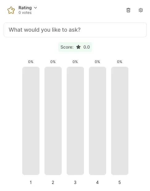 - Survey - Create a survey combining multiple questions (unlike the above 6 types, participants answer multiple questions collectively as one set).