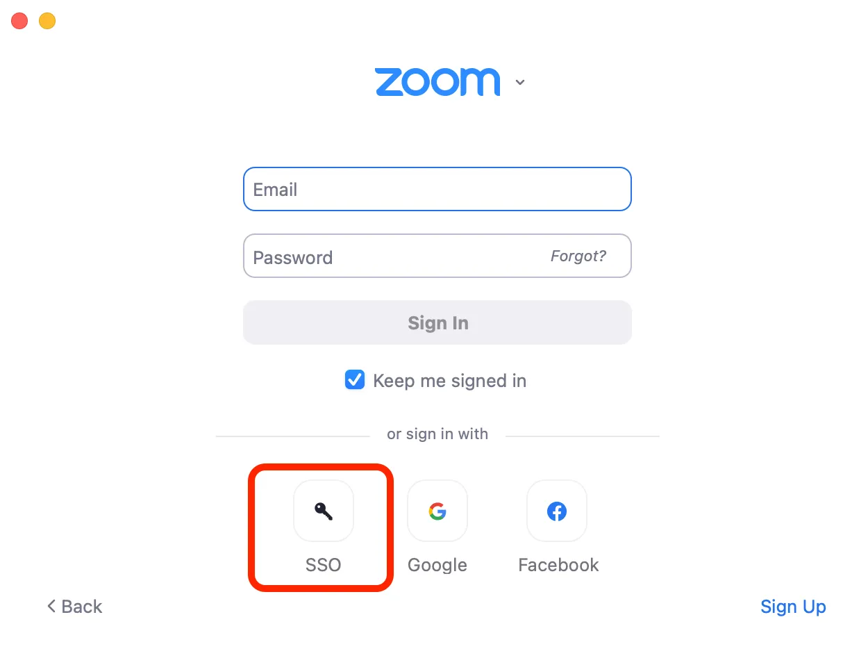 Signing in from the Zoom App