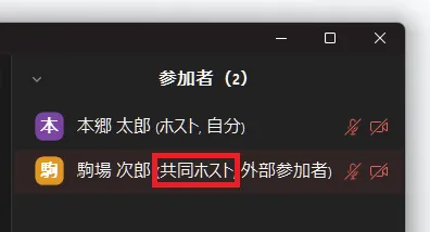 4. 共同ホストの設定が完了しました.必要に応じて共同ホストになっていることを確認することができます.