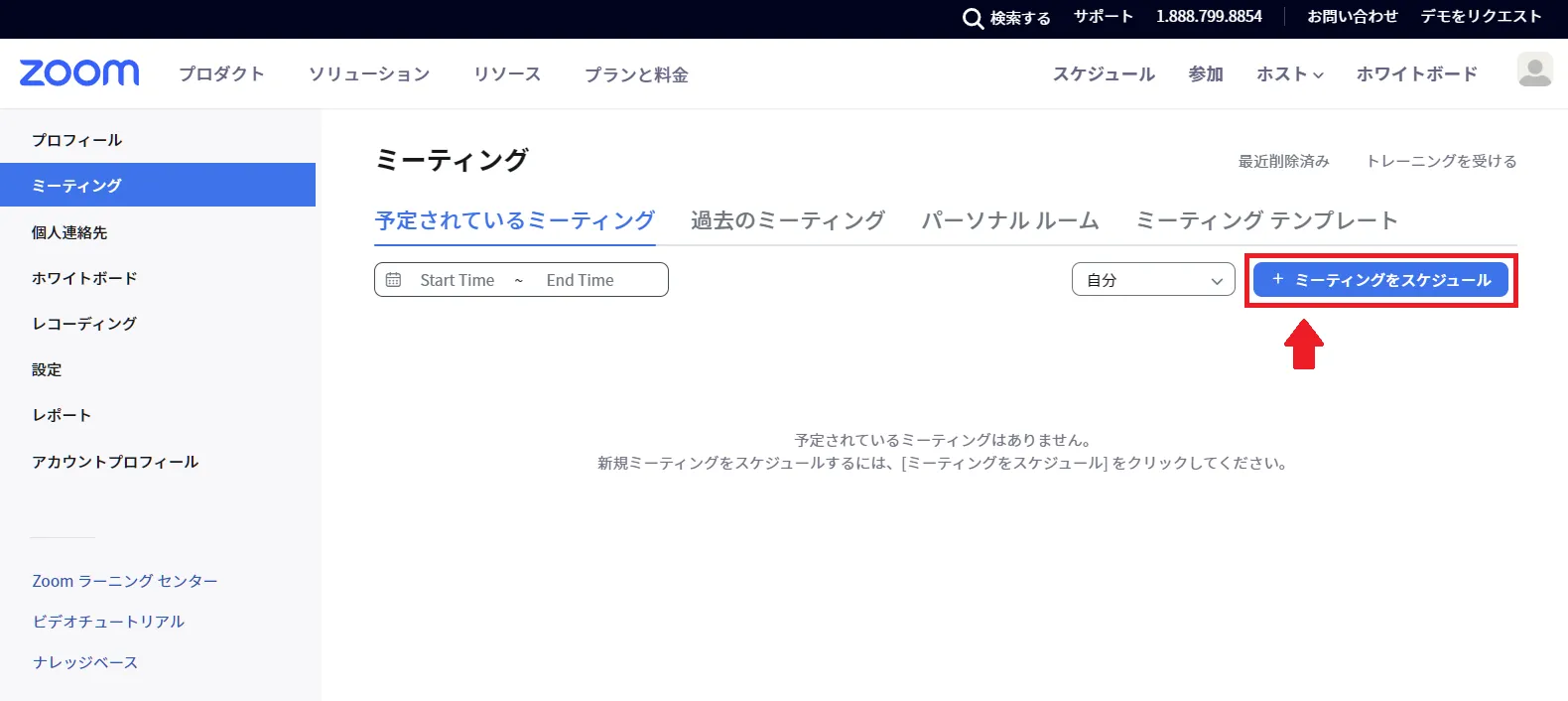 1. Zoom ウェブポータルの「ミーティング」ページにアクセスしてください.